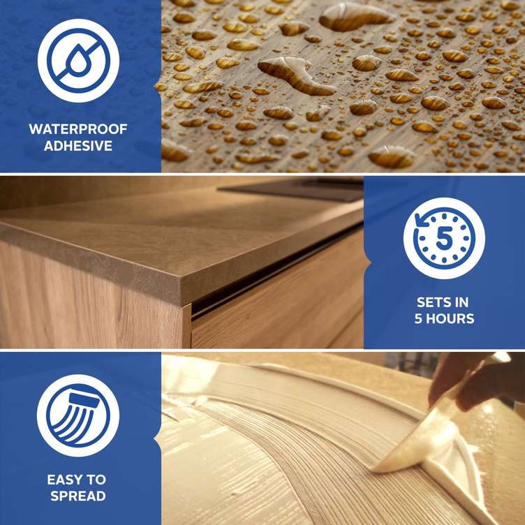 Fevicol Marine is fast setting (4-6 hours) and offer superior coverage, i.e. 5kg adhesive is enough to paste 7 laminates to plywood