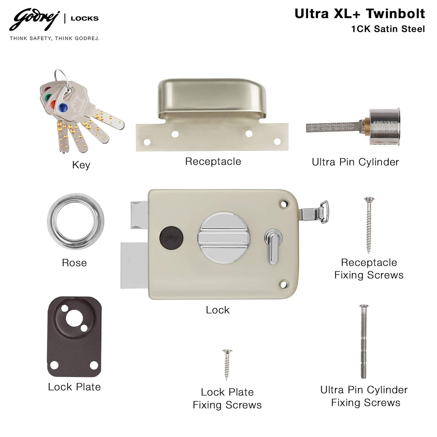 Godrej Rim Lock I Twinbolt XL+ I 1CK Latchbolt (INSIDE OPENING)
