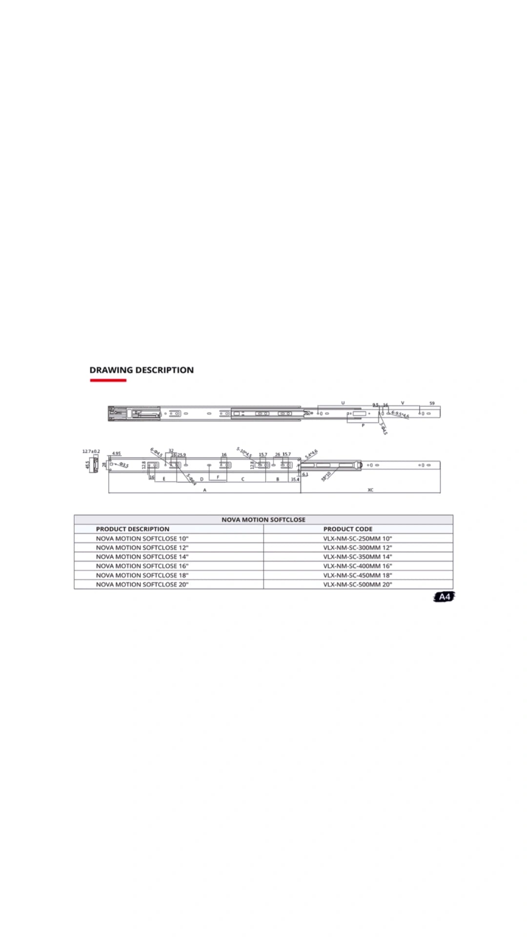 VELLIX SOFT CLOSE DRAWER CHANNEL (LIFETIME WARRANTY)